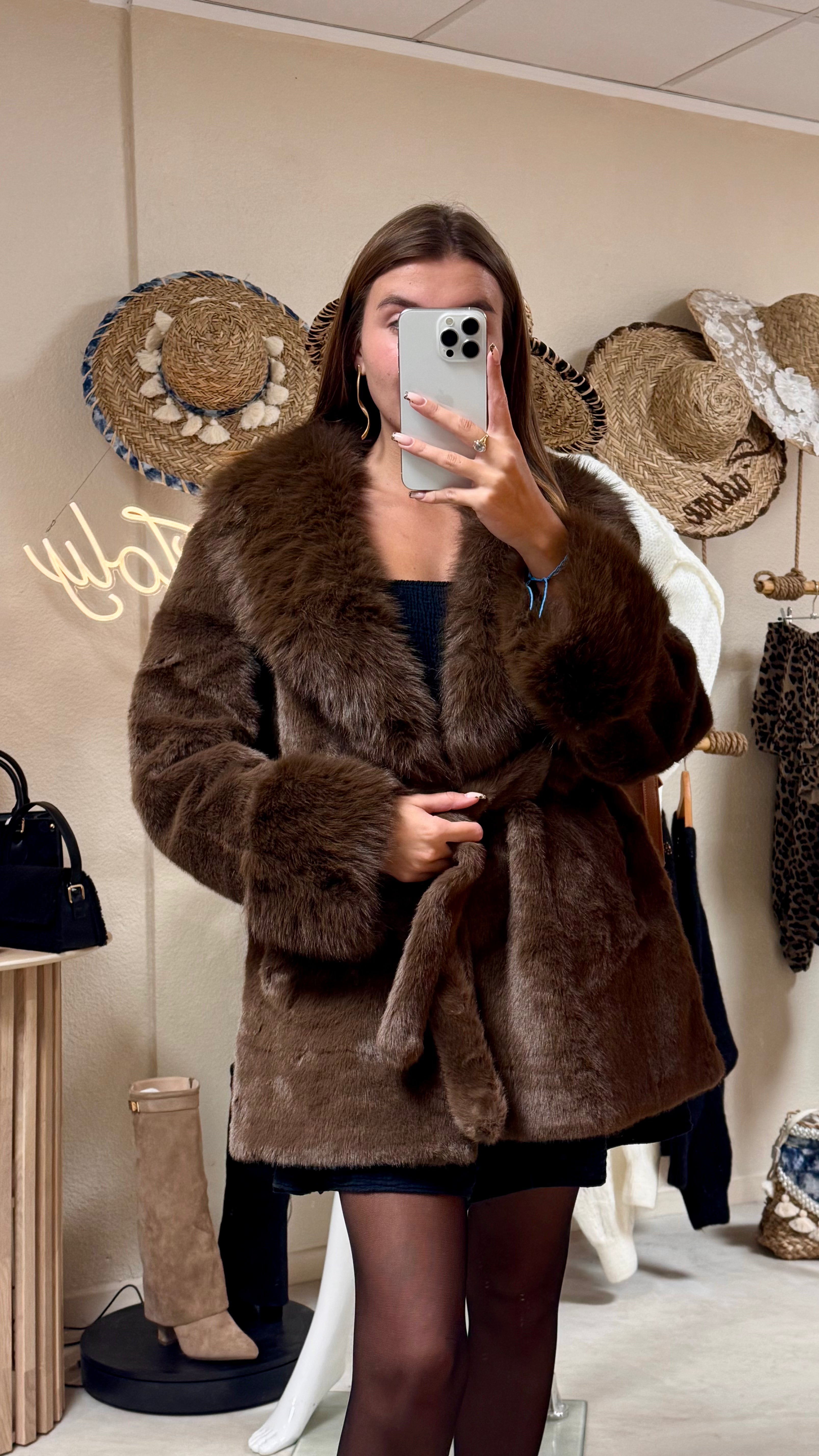 Découvrez notre Manteau Élégance Sauvage - Marron, en fausse fourrure ultra douce avec une coupe droite ajustable grâce à sa... En savoir plus En savoir plus