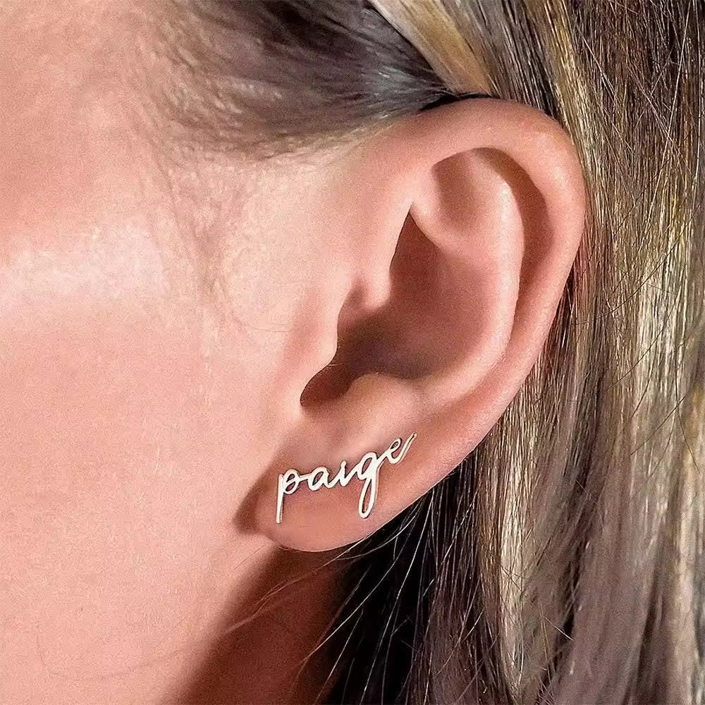 Ces boucles d’oreilles en acier inoxydable est personnalisé avec le prénom ou mot de votre choix