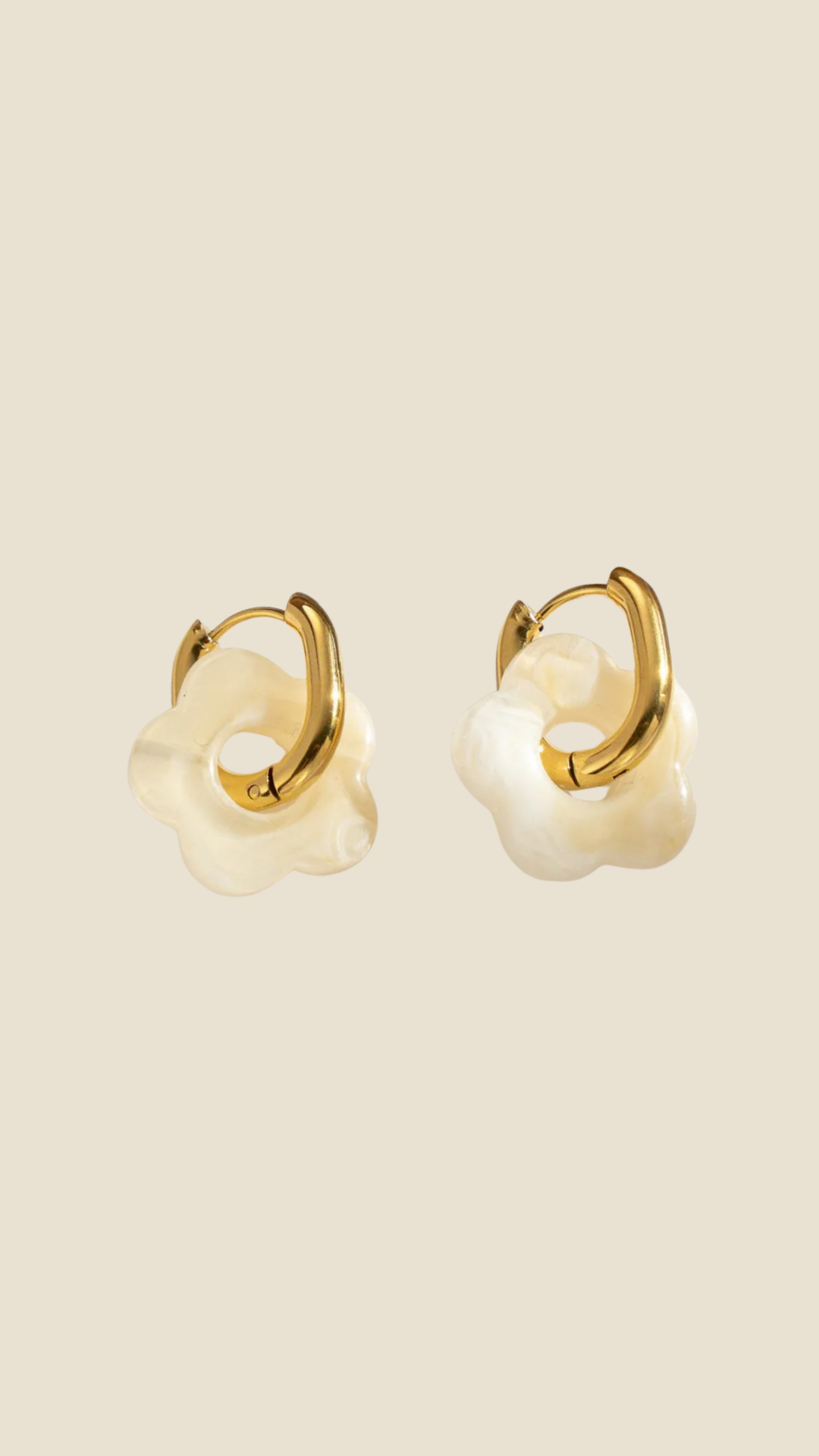 Découvre le charme élégant des boucles d'oreilles Lyria en forme de fleurs. Cette paire apporte une touche poétique et contemporaine à ta tenue. Montées sur anneaux dorés en acier, légèreté et brillance se combinent en un bijou délicat et audacieux, pour célébrer la couleur et la féminité.