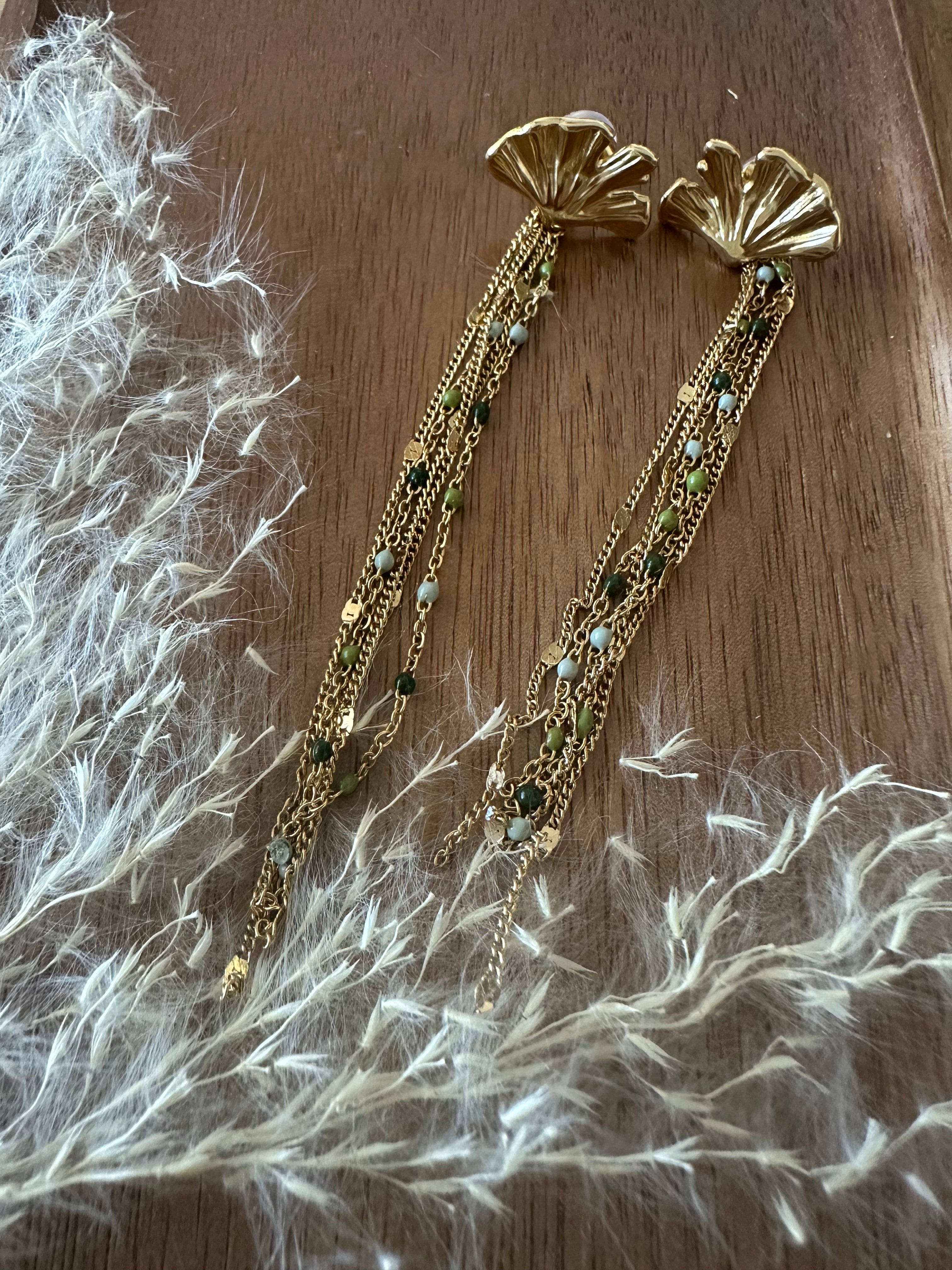 "Illuminez votre look avec les boucles d'oreilles Calysta en acier inoxydable doré. Le design pendante ajoute une touche de sophistication, tandis que la qualité de l'acier inoxydable garantit une durabilité et une brillance durables. Parfait pour compléter n'importe quelle tenue avec une touche d'élégance."