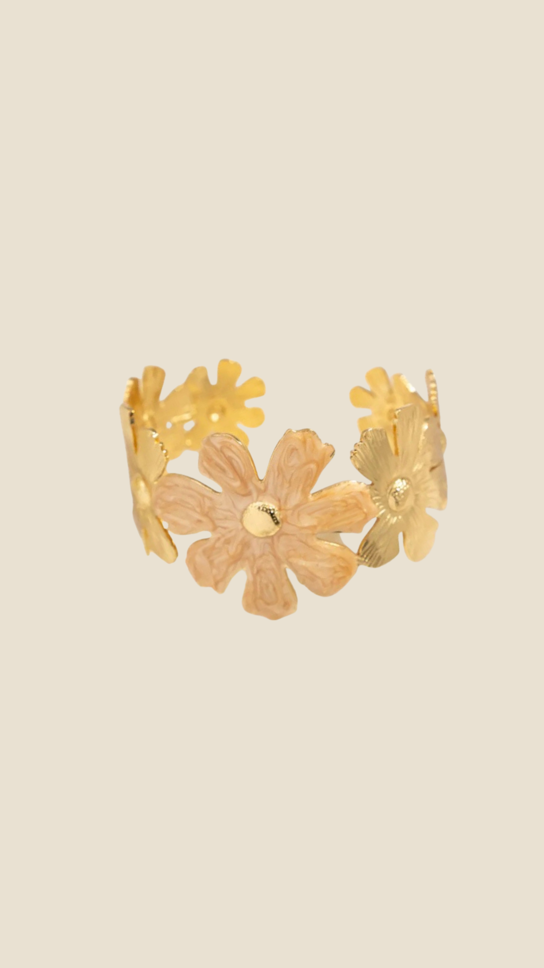 Découvrez notre Bracelet Flora - Beige ! En acier inoxydable doré, orné de fleurs marbrées, ce bijou délicat inspire la douceur et l'élégance naturelle. Réglable et hypoallergénique, il apporte une touche raffinée à votre poignet. Féminin et poétique, il complète parfaitement un look romantique, bohème ou cérémonial. Un bijou intemporel qui célèbre la beauté florale.