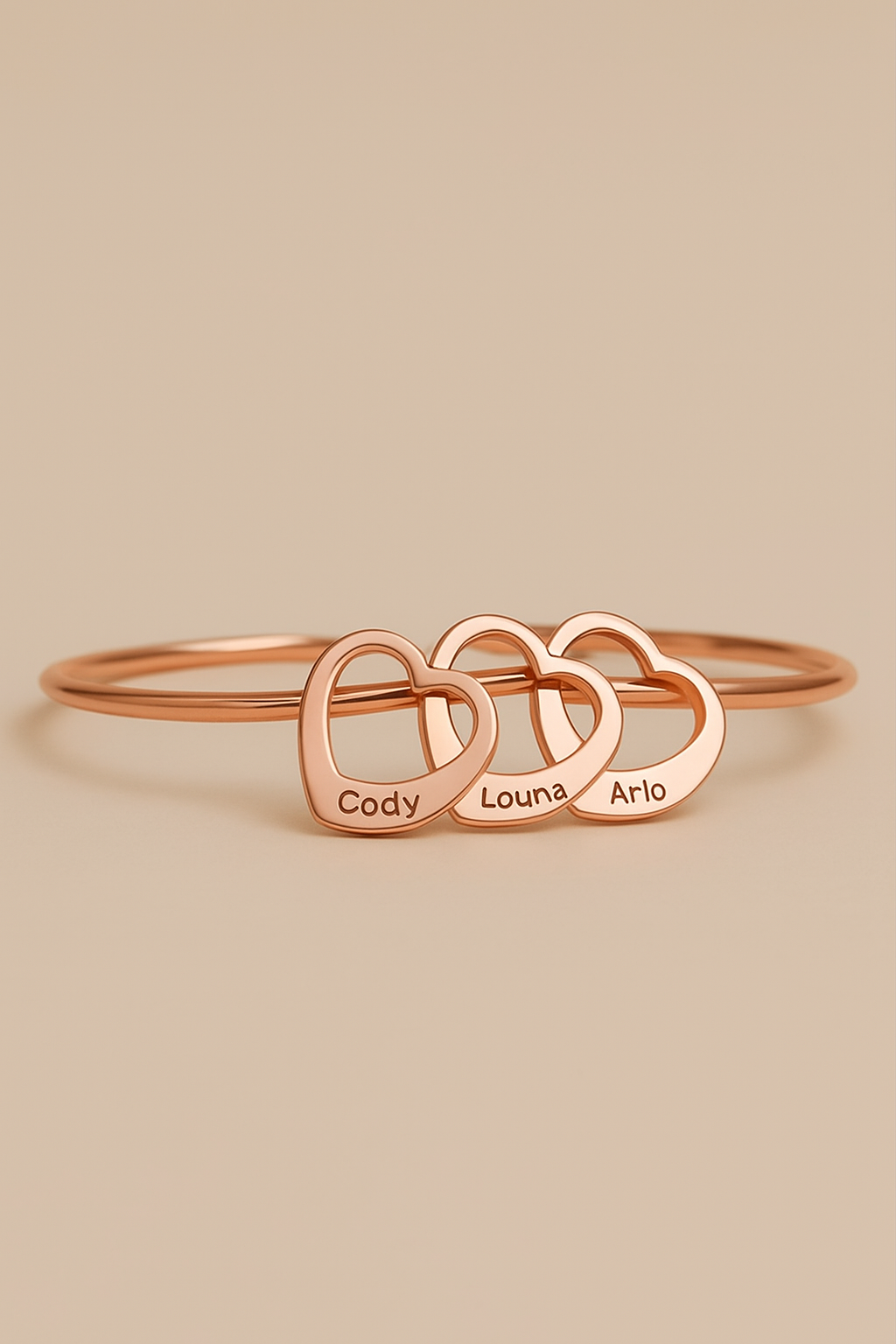 Ce bracelet en acier inoxydable est personnalisé avec le prénom ou mot de votre choix sur un petit cœur, vous pouvez choisir entre 1 et 6 cœurs personnalisés à rajouter sur votre bracelet.
