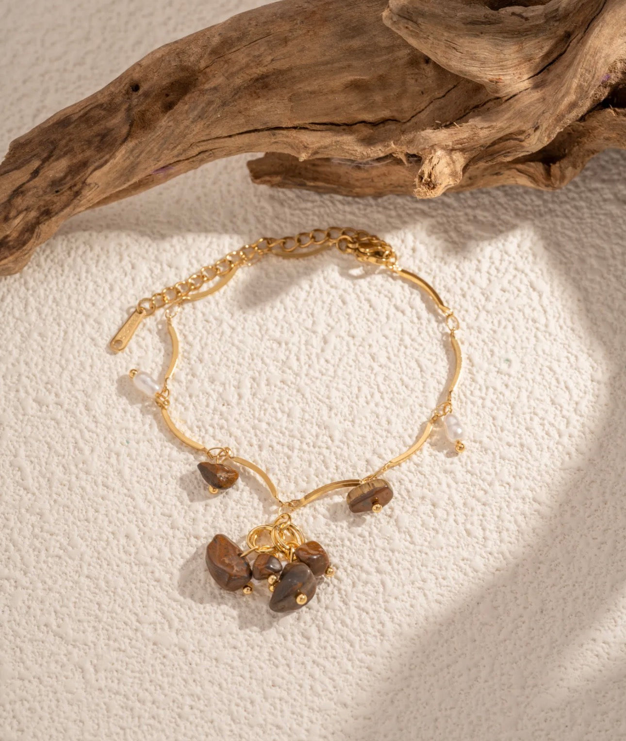 Ajoutez une touche de beauté naturelle à votre style avec notre Bracelet Natura - Chocolat . Fabriqué avec des pierres authentiques et orné de perles fines, ce bijou artisanal doré est réglable et peut être porté seul ou en accumulation pour un look bohème et élégant.