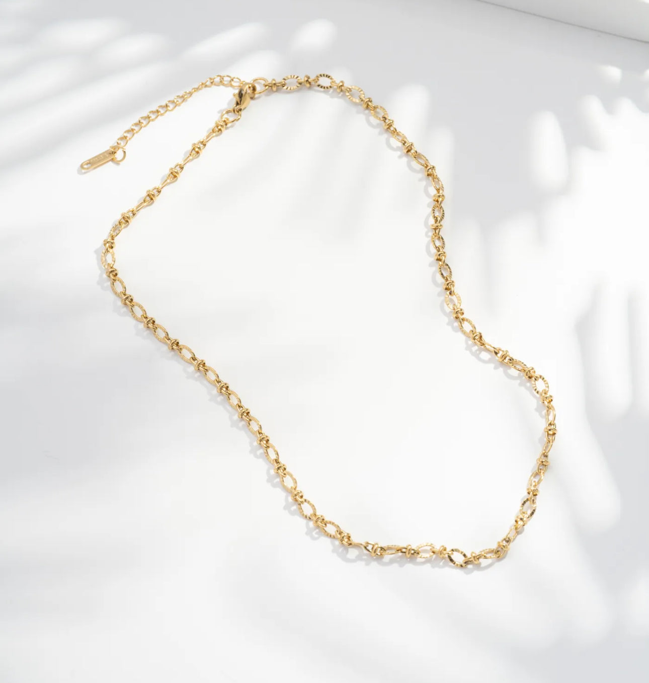 Ce collier charmant en acier inoxydable est la base idéale pour créer votre bijou parfait. Avec sa chaîne en maillons fins et son fermoir ajustable, vous pourrez personnaliser et adapter à votre style sans limites. Portez-le seul ou en accumulation avec vos charms préférés pour raconter votre histoire en doré.